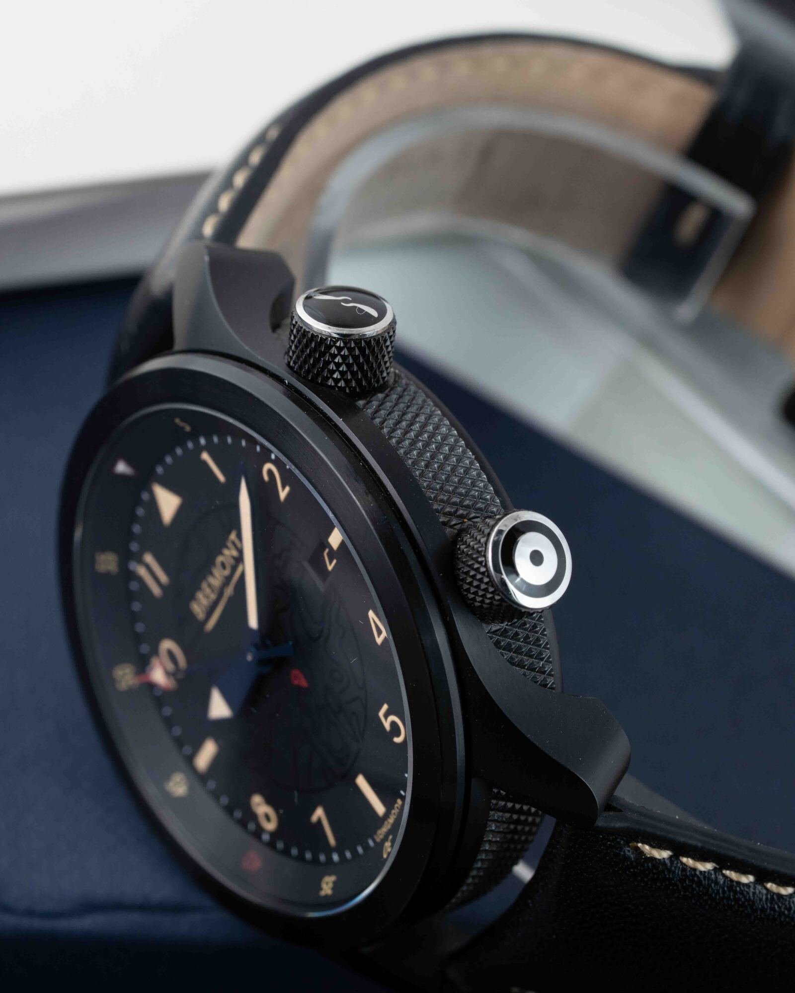 This Bremont U2 U2-JET-AN-CPU-2022-S has a Black dial and a Leather strap. This Bremont has undergone a thorough inspection of water resistance, accuracy, functionality and condition to determine the level of reconditioning required to meet our strict standards. It has also been referenced against technical documents and manufacturer records where available to ensure authenticity and a clean history.